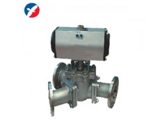 气动Y型三通球阀有相互成120°和两通孔成135°,根据需要可实现对介质流向切换两种工况。