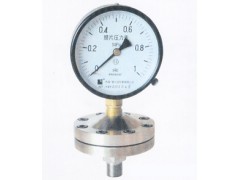膜片压力表 由测量系统(包括法兰接头、波纹膜片)、传动指示机构(包括连杆、齿轮传动机构、指针和度盘)和外壳(包括表壳和罩圈)等组成。 膜片压力表 外壳为防溅结构,具有较好的密性,故能保护其内部机构免受污秽浸入。压力表首选中能仪表。