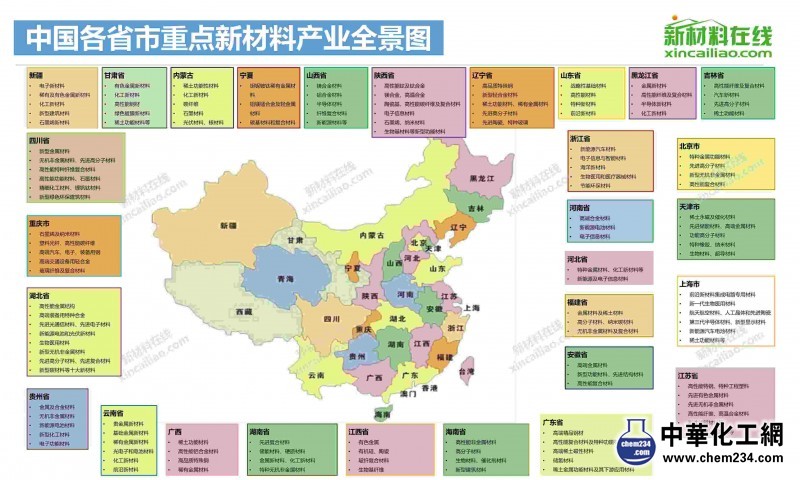中国各省重点新材料产业全景图