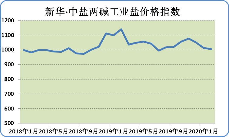 本期新华·中盐两碱工业盐价格指数微幅下调。数据显示,截至3月9日,指数报1005.29点,较上月下跌8.98点,跌幅0.89%;较基期上涨5.29点,涨幅0.53%。