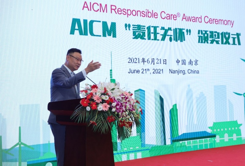 2021年6月21日,由国际化学品制造商协会(AICM)主办的2021年“责任关怀”颁奖典礼在南京隆重召开。这是自2013年以来,AICM连续举办的第五届“责任关怀”奖项评选。这项每两年举办一次的评选旨在表彰AICM会员在推行和实践“责任关怀”方面所做的突出贡献,为在中国化工行业推广“责任关怀”树立模范榜样。AICM理事会成员、获奖企业代表,以及来自中国石油和化学工业联合会(CPCIF)的周竹叶副会长等合作单位及新闻媒体的各路嘉宾齐聚一堂,共同见证这一行业盛事。国际化工协会联合会(ICCA)责任关怀领导小组(RCLG)主席包德万先生、欧洲化学工业委员会(Cefic)气候变化和能源执行理事查尔斯也通过线上接入方式参与此次典礼。