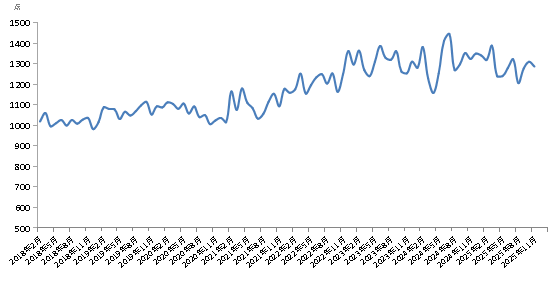 新华财经北京12月17日电(陆子琛、蒋正阳)2025年11月份,新华·中盐食用盐(商超)价格指数报1286.92点,较上期(2025年10月)下跌23.18点,跌幅1.77%;较基期(2018年1月)上涨286.92点,涨幅28.69%;较周期内最高点1445.75点(2024年7月)下跌158.83点,跌幅10.99%;较周期内最低点981.91点(2018年12月)上涨305.01点,涨幅31.06%。