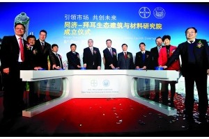 中华化工网讯:中国建筑和材料科学领域的顶尖院校同济大学与拜耳材料科技公司、拜耳基金会日前共同宣布,同济—拜耳生态建筑与材料研究院在上海成立。此举开创了我国建筑行业以研究院的形式开展“产学研”合作的先河。双方将在教育、创新研究和人才培养等3个方面通力合作,促进中国可持续建筑的发展。同时,拜耳材料科技将通过拜耳上海聚合物科技研发中心,为优秀的同济学生提供实习机会,为生态建筑和材料领域的学生创新项目、活动或倡议提供支持。图为研究院成立启动仪式。(特约记者 顾定槐 摄)