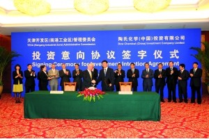 (中华化工网讯) 讯 9月10日,天津经济技术开发区(南港工业区)管委会与美国陶氏化学公司就特种化学品项目签署投资意向协议。陶氏化学拟在南港工业区投资12亿美元,建设特种化学品和配套物流仓储项目。该项目技术含量高、附加产值大、市场前景看好,有助于促进天津石化产业结构调整,加快国家级石化产业基地建设。