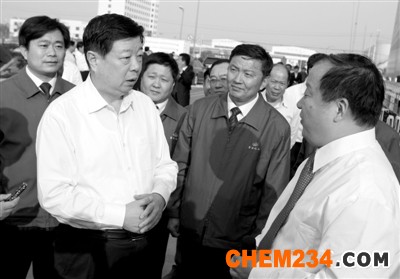 核心提示:中华化工网讯 2010年10月8日,山东省委书记、省人大主任姜异康(右二)到鲁西化工工业园考察指导工作。姜异康对鲁西化工在节