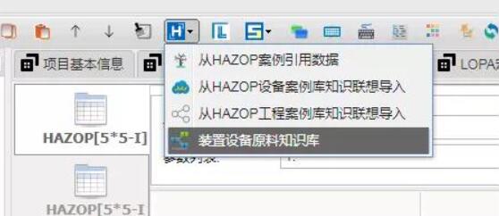 (1)点击HAZOP导入图标-->装置设备原料知识库