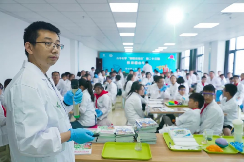 在实验环节中,同学们严格按照实验要求穿戴防护用品,通过自己动手操作实验和填写实验记录表进一步体验化学实验的严谨和魅力。拥有变色能力的“魔法瓶子”、能够迅速胀大的聚氨酯泡沫以及用生活中常见水果进行发电,一个个简单有趣的实验让同学们惊呼化学的神奇。