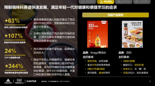 2、新一代消费者对健康饮食和便捷烹饪的要求都比较高,促使预制调味料赛道快速发展,增速高达300%。其中,主打低糖低脂、口味丰富的复合调味料,尤其深受年轻人的喜爱。