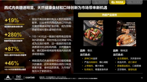 3、烤肠等西式肉类增速明显,天然健康的食材和口味创新,是吸引消费者的核心要素。