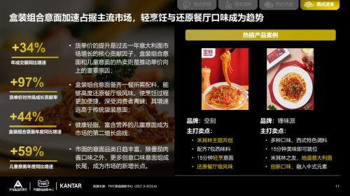 4、轻烹饪和还原餐厅口味也成为热门趋势,便捷又美味的盒装组合意面,加速占据了主流市场。