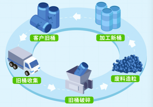 目前,废塑料包装桶的循环利用已经在华北、华东和华南等区域成功实践,在提高回料桶产品质量稳定性同时还具有显著的经济效益,这极大的解决了下游客户处理废弃包装物的痛点,为治理塑料污染提供了借鉴。