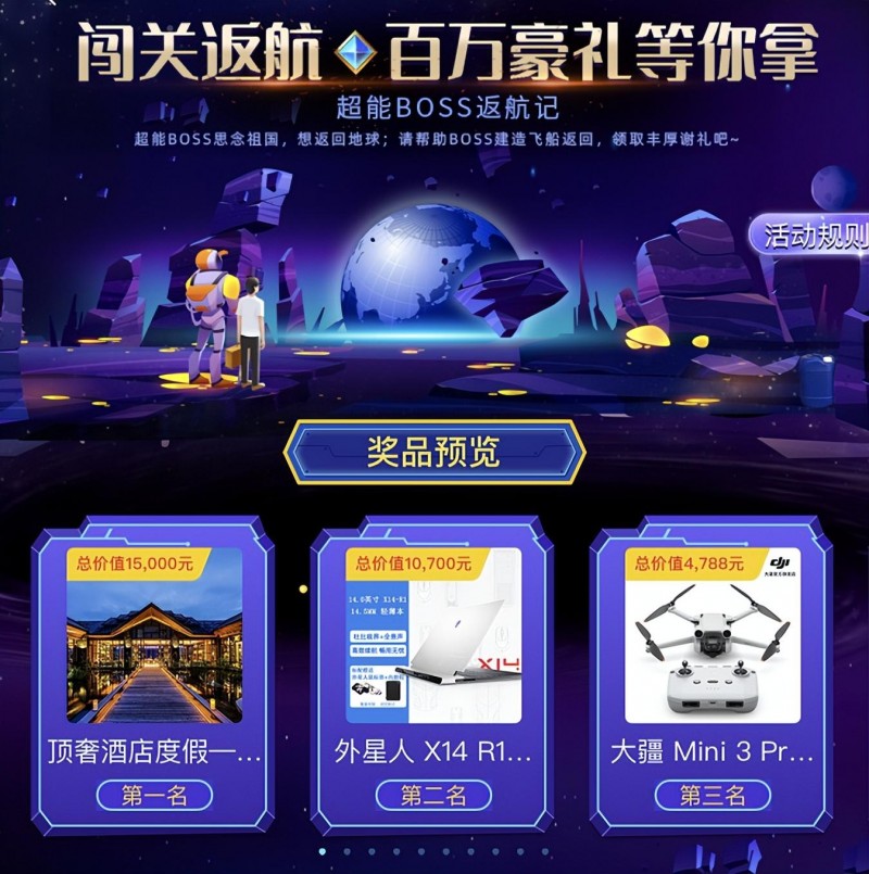 整个游戏画面感非常酷炫,玩法也很简单。总共设置了10多款奖品,粗略计算一下总价值最少得有10万。最吸引我的是豪华顶奢酒店、外星人电脑、iPhone14这些想买又觉得有点贵的东西,这里都免费送了!