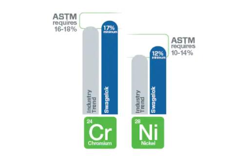 供应商可以帮助您验证材料适用性的另一种方法是,检查材料成分中特定元素的含量。耐腐蚀性、强度、可焊接性和延展性都要从合金的化学成分说起。例如,316 型不锈钢中的镍 (Ni) 和铬 (Cr) 含量高于美国测试与材料协会(现为 ASTM International)标准规范的要求,从而使材料具有更优良的耐腐蚀性。供应商应始终提供材料的化学成分,并表明成分符合国际标准组织 (ISO) 和 ASTM International 发布的标准