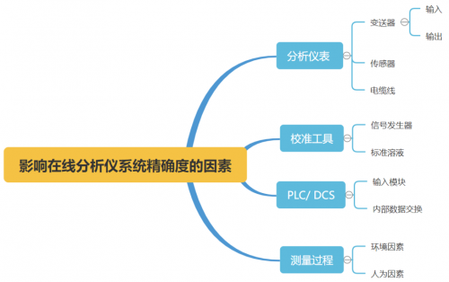 依据在线分析仪结合自控系统在使用等环节的常见误差,我们整理了影响系统精确度的部分因素,只有了解影响系统精确度的因素后,才能有的放矢地进行解决。