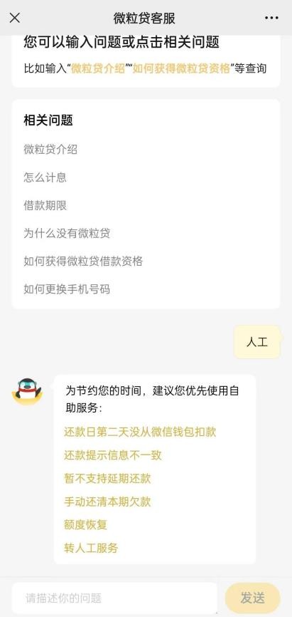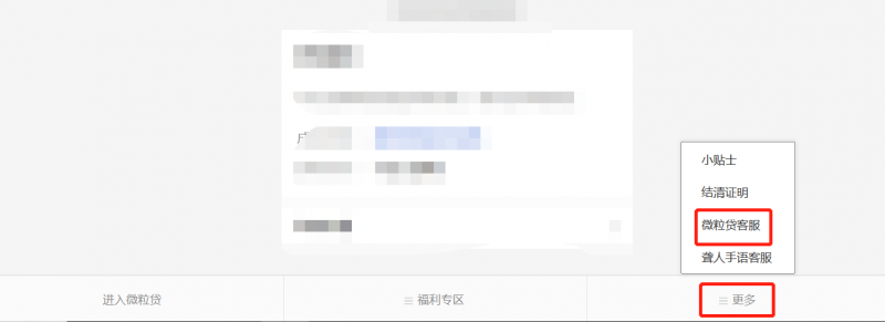 在微信搜索“微粒贷”,即可进入官方微信公众号。点击“更多”按钮,选择“微粒贷客服”选项,就会有在线智能机器客服小粒为你服务,而且随着科技发展,智能机器客服已经可以解答大家很多疑惑了,24小时服务,非常方便。