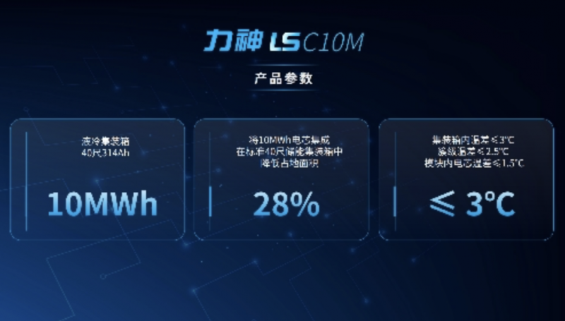 其中,LS-C10M作为迄今为止全球首款单箱10MWh储能产品,无论从安全性还是从能量密度及宜用性角度来看,都处于行业市场领先地位。