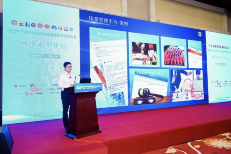 2024年4月23日-25日,2024中国石油石化企业信息技术交流大会暨油气产业数字化转型高峰论坛在北京市盛大召开!矩网科技有限公司(以下简称“矩网科技”)一行受邀出席大会,并在网络安全分论坛发表主题为《动码印章助力油气企业印章数字化转型升级》的演讲。展示了矩网科技在石油石化企业印章数字化转型升级方面的最新研究成果和实践经验,以动码印章产品创新技术助力油气企业提高印章风控、便携管理水平,推进行业加快数智技术创新生态体系建设。