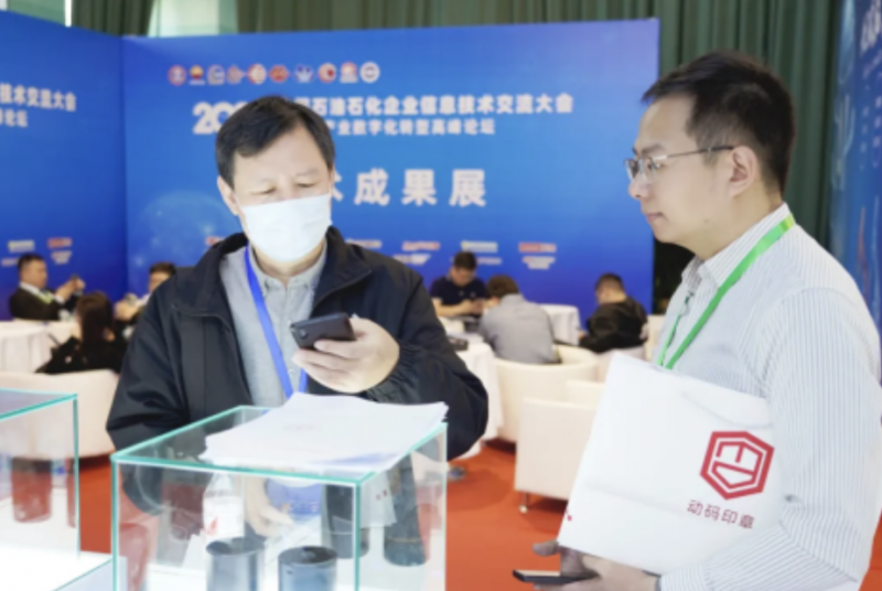 现场,动码印章的全场景安全印章智慧解决方案脱颖而出,来自各界的领导和专家纷纷莅临动码印章展位,倾听工作人员详细讲解动码印章的功能及其广泛的应用场景,并给予高度认可和鼓励。其创新技术、独特功能也吸引了众多油气行业头部企业、大型央国企等驻足咨询,深入洽谈合作事宜。动码印章技展示了在数字化转型创新应用的深厚实力,为助力石油石化企业数字化转型、智能化发展提供安全、便捷和高效的智慧印章解决方案,也期待与更多伙伴展开深入的合作交流,共同为推进新型工业化、发展新质生产力而贡献力量!