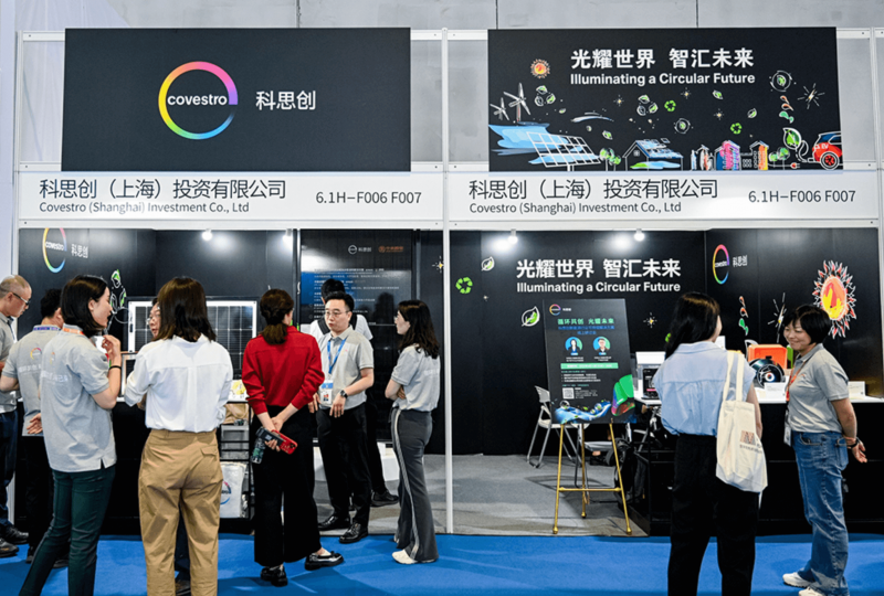 展示亮点之一是科思创与回天新材携手推出的创新型部分生物基光伏涂层背板,其在行业内首次采用了生物基含量高达70%[*1]的科思创Desmodur® CQ部分生物基固化剂。该涂料解决方案可确保背板的防水、抗紫外线以及电绝缘等关键性能与同类石油基涂层背板相当,并显著降低碳排放。例如,如果使用Desmodur® CQ,每生产1吉瓦太阳能背板,就可减少41吨二氧化碳排放,相当于1万棵树一年的二氧化碳吸收量。CQ用于标识替代性原材料含量至少为25%的科思创产品。