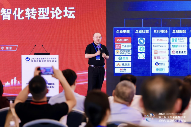 在演讲中,程序提出企业数字化采购的全新设计理念,即互联网思维的应用,包括以用户为中心、数据驱动和生态协同三大核心。