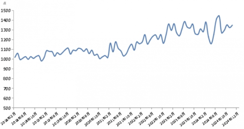 12月份,新华·中盐食用盐(商超)价格指数报1349.88点,较上期(2024年11月)上涨26.07点,涨幅1.97%;较基期(2018年1月)上涨349.88点,涨幅34.99%;较周期内最高点1445.75点(2024年7月)下跌95.87点,跌幅6.79%;较周期内最低点981.91点(2018年12月)上涨367.97点,涨幅37.47%。