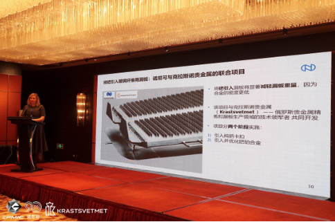 诺尼可钯中心新产品商业化部门负责人Anna Karzhavina女士发表演讲