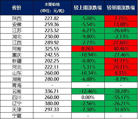 注:由于月内并未获取青海、宁夏相关数据,本月暂以“-”替代。