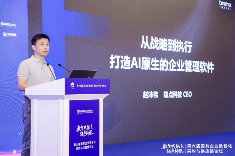 央国企是我国经济稳中向好的压舱石和主力军,也是数智化转型的排头兵。当AI技术逐步进入深水区,怎样让AI真正在企业战略和供应链管理中发挥核心价值,推动企业智慧供应链迈向更高水平,成为大会关注的核心议题。主论坛上,端点科技创始人兼CEO赵沣伟发表了主题演讲《从战略到执行,打造AI原生的企业管理软件》,展示了端点科技AI原生ERP将AI赋能企业管理的沉淀、思考与创新。