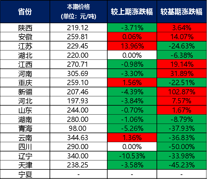 注:由于并未获取6月宁夏相关报价,本月地方相关数据均暂以“-”替代。