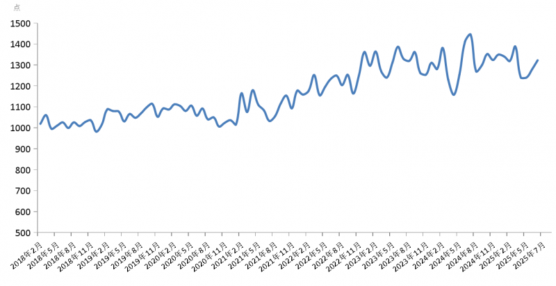 新华财经北京8月18日电(陆子琛、蒋正阳)2025年7月份,新华·中盐食用盐(商超)价格指数报1322.66点,较上期(2025年6月)上涨43.43点,涨幅3.40%;较基期(2018年1月)上涨322.66点,涨幅32.27%;较周期内最高点1445.75点(2024年7月)下跌123.09点,跌幅8.72%;较周期内最低点981.91点(2018年12月)上涨340.75点,涨幅34.70%。
