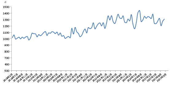 新华财经北京11月17日电(陆子琛、蒋正阳)2025年10月份,新华·中盐食用盐(商超)价格指数报1310.10点,较上期(2025年9月)上涨32.34点,涨幅2.53%;较基期(2018年1月)上涨310.10点,涨幅31.01%;较周期内最高点1445.75点(2024年7月)下跌135.65点,跌幅9.38%;较周期内最低点981.91点(2018年12月)上涨328.19点,涨幅33.42%。
