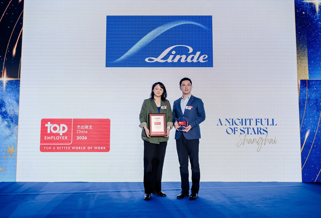 上海,2026116日,全球领先的工业气体和工程公司——林德宣布,连续第12年荣膺杰出雇主调研机构(Top Employers Institute)颁发的“中国杰出雇主”认证。
