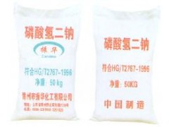 性能特点: 无色透明单斜系棱形晶体,相对密度1.52,在空气中易风化,极易失去五分子结晶水而形成七水物(Na2HPO4.7H2O)。可溶于水、不溶于醇。水溶液呈微碱性反应(0.1-1N溶液的PH约为9.0)。在100℃失去结晶水而成无水物,250℃时分解成焦磷酸钠。