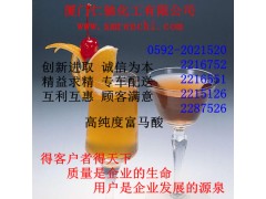 中文名: 反丁烯二酸,延胡索酸,富马酸。 白色无臭颗粒或结晶性粉末。有特殊酸味,酸味强,约为柠檬酸的1.5倍。极难溶于氯仿和油类。可用于清凉饮料、西式酒、冷饮、浓缩果汁、果冻、水果罐头、腌菜、硬糖、冰淇淋,用作固体饮料产气剂的酸性物质,气泡持久性好,产品组织细腻。用途:酸化剂、增香剂、抗氧化助剂