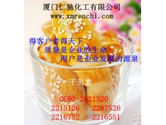 干贝素外观为白色结晶状颗粒,具有独特的贝类鲜味,与味精按一定比例混合使用,可产生鲜味相乘的效果,能缓和其他调味品的刺激性,增强呈味力,抑制异味;另外干贝素具有耐高温的特性,适合在热处理食品中使用。无臭,无酸味,有特殊贝类滋味。味觉阈值0.03%。至120度时失去结晶水而为无水物。易溶于水,不溶于乙醇。在空气中稳定。 用途:调味剂;酸味剂;缓冲剂。主要用于火腿、香肠、水产品、调味液等,一般用量为0.01%-0.05%。作为调味品使用,一般用粉状的无水物,以加速溶解。经过严格筛选的优质干贝提炼浓缩而成,只需一点点就可得到干贝独特的鲜味和风味,蒸、炸、炒、煮、炖都适宜 公司总投资3100万余元,现已有2.3亿固定资产。公司投资规模大,设备领先,技术精良,是国内为数不多的大型化工生产企业之一,公司汇集了化工界一流的技术、质检、管理人才,产品销售供不应求,前景广阔,经济效益和社会效益显著。跨世纪的厦门仁驰化工有限公司愿与国内外各界同仁志士竭诚合作,共创未来