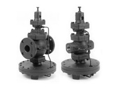 这种减压阀类似于内导式活塞式减压阀(内部采用了一个导阀和一个主阀)。但是双膜片代替了活塞阀。增大的膜片面积能够打开更大的主阀,与内导式活塞减压阀相比,在相同的管道尺寸下容量更大。另外,膜片对压力变化更为敏感,精确度可达+/-1%。精确性更高是由于下游传感线的定位,其所在位置气体或液体动荡更少。该减压阀非常灵活,可以采用不同类型的导阀(例如压力阀、温度阀、空气装载阀、电磁阀或几种阀同时配套使用)。