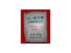 DL-酒石酸性状:无色结晶或白色结晶粉末,无嗅、有酸味,在空气中稳定。它是等量右旋和左旋酒石酸的混合物,常含有一个或两个结晶水,热至100℃时失掉结晶水。密度1.697,其水溶解度20.6%,乙醚中溶解度约1%,乙醇中溶解度5.01%。0.3水溶液的PH值为2.4。 用途:酸、抗氧化增效剂、螯合剂、香剂、乳化剂。在低温时对水的溶解度低。其酸味为柠檬酸的1.3倍,特别适用作葡萄汁的酸味剂。 限量:GB 2760-96:各类食品,均GMP。