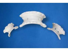 陶瓷异鞍环填料是在矩鞍环填料的基础上加以改进的新型填料,将矩鞍填料的平滑弧形侧面改为锯齿形或纹纹凸起的侧面。这样在填料床层内,增加了填料间接触的空隙,使之更有利于气体和液体在填料层中的流动和扩散,具有压降低,传质效率高等特点,广泛应用于硫酸生产的干燥塔和吸收塔中。