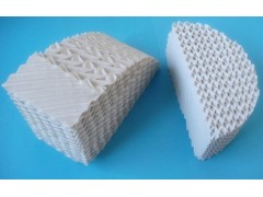 陶瓷规整填料是一种新型规整填料,它是由许多具有相同几何形状的填料单元体组成。由于陶瓷独特的结构,具有良好的亲水性能,其表面可形成极薄的液膜的湍动及气流的倾斜曲折通道能促进气流但又不阻挡气流使陶瓷填料能与金属填料相匹敌,而其耐腐蚀、耐高温性能金属填料却无法相比。表面结构有良好的湿润性能,能使液体加快流动、使填料滞液量降至最低。从而降低了过热、聚合和结焦的机会。