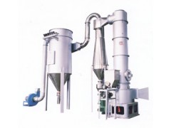 热空气切线进入干燥器底部,在搅拌器带动下形成强有力的旋转风场。膏状物料由螺旋加料器进入干燥器内,在高速旋转搅拌桨的强烈作用下,物料受撞击、磨擦及剪切力的作用下得到分散,块状物料迅速粉碎,与热空气充分接触、受热、干燥。脱水后的干物料随热气流上升,分级环将大颗粒截留,小颗粒从环中心排出干燥器外,由旋风分离器和除尘器回收,未干透或大块物料受离心力作用甩向器壁,重新落到底部被粉碎干燥。