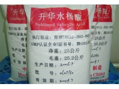 本品为白色块状或粉末,允许微带黄和淡粉色,无臭味微甜后转辛,置空气中无变化,76℃以上能常压升华。常压加热易脱羧而成苯酚及二氧化碳,其水溶液呈酸性反应,遇FeCL3呈紫色。本品在水中微溶、在沸水中溶解、在乙醇或乙醚中易溶、在氯仿中略溶。