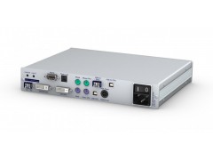 通过光纤传输 2 x DVI 双链路接口, 键盘/鼠标, 音频, 和 RS232 信号,这些信号可从服务器机房延长到控制器的桌面。