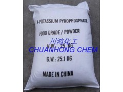 物化性质:白色粉末;相对密度2.534;熔点1109oC;溶于水,不溶于乙醇;水溶液呈碱性;25oC时100g水中的溶解度为187g;焦磷酸钾具有其他缩合磷酸盐的所有性质。
