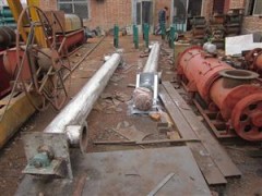 冷却型螺旋输送机是采用国际标准产品,等效用 ISO1050-75 标准,设计符合 ZBJ1005.1-2-86 标准。其技术指标先进,结构新颖,是我国九十年代夫代 GX 型螺旋输送机的换代产品。 实用新型涉及到一种螺旋输送机,尤其适用于输送高温粉粒料,本实用新型采用可以循环冷却水的空心螺旋轴和带夹套的壳体结构,空心螺旋轴设有中间悬挂轴承,中间悬挂轴承亦设有与夹套相通的冷却腔,输送机两端采用压盖填料式密封,采用本实用新型可用于各种锅炉的干式除渣(灰)高温输送,便于炉灰的综合利用,由于可使用锅炉用水做为冷却水源,可提高锅炉进水温度,节约能源,另外本实用新型如用于水泥厂熟料高温运输,可替代现有的气体冷却输送装置,效益明显。