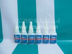深圳市三信鸿胶业有限公司产销的400快干胶系列。低白化,高强度。通用及常用型其对于金属、塑胶、橡胶以及惰性材料与常规材料粘接。401其粘度适中,决定其渗透性;可达缝隙深处,起到快速固定和粘接作用,其成分:a -氰基丙烯酸甲氧基乙酯Methoxyethtl cyanoacrylate Adhesive低白化,低气味,单组份,中速固化,粘接材料广泛,适用于P+R.....电器、仪表、机械、电子、光仪等行业适用