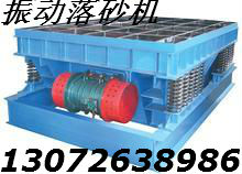一对对称安装的振动电机反向同步运转,水平方向的分力相互平衡,垂直方向的合力使落砂机的隔振质体以一定的加速度作正弦振动,同时通过共振簧使工作质体以相同频率作正弦振动。铸型被抛起(带砂箱或不带砂箱)然后下落与棚床(工作质体)碰撞,砂型与砂箱分离,铸件与砂型分离。砂团被破碎后通过棚格孔落到回砂皮带上。由于振动电机的合力方向与工作质体上平面垂直,所以铸件不能自御,需起用吊设备吊离机器,完成一个铸型落砂过程。