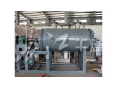 本机是一种新颖卧式间歇式真空干燥设备,湿物料经传导蒸发,带有刮板搅拌器不断清除热面上的物料,并在容器内推移形成循环流,水份蒸发后由真空泵抽出。
