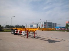 用于运输45英尺集装箱或框架式箱罐;牵引销处车架总高度90mm;侧防护装置,材料:Q235,连接方式:螺栓连接;后下部防护装置,材料:Q235,连接方式:焊接,断面尺寸(mm):140×35,离地高度:550 mm; |