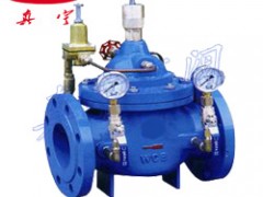 400X流量控制阀是一种采用高精度先导式方式控制流量的多功能阀门。适用于配水管需控制流量和压力的管道中,保持预定流量不变,将过大流量限制在一个预定直,并将上游高压适当减低,即使主阀上游的压力发生变化,也不会影响主阀下游的流量。400X流量控制阀一改常规节流阀使用孔板或纯机械地减小流域面积的原理,利用相关导阀,最大限度地减少能力在节流过程中的损失。如遇紧急情况400X控制阀可以完全截止流量,避免损失。控制灵免度高,安全可靠,调试简便,使用寿命长。