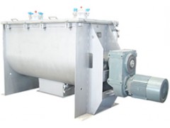 卧式螺带混合机由U形容器、螺带搅拌叶片和传动部件组成;螺带状叶片一般做成双层或三层,外层螺旋将物料从两侧向中央汇集,内层螺旋将物料从中央向两侧输送,形成对流混合。 螺带混合机对于粘性或有凝聚性的粉粒体的混合以及粉粒体中添加液体及糊状物料的混合有良好的效果,筒盖可做成全开式门,以便于对设备进行清洗更换产品。